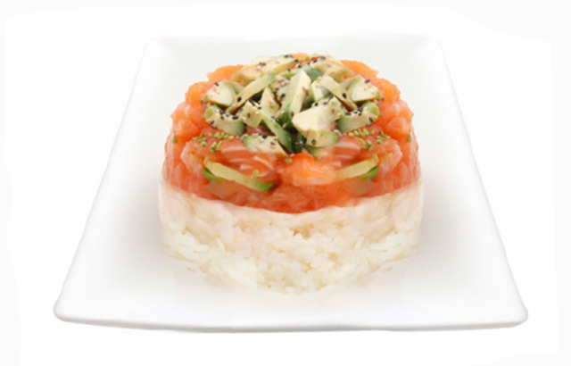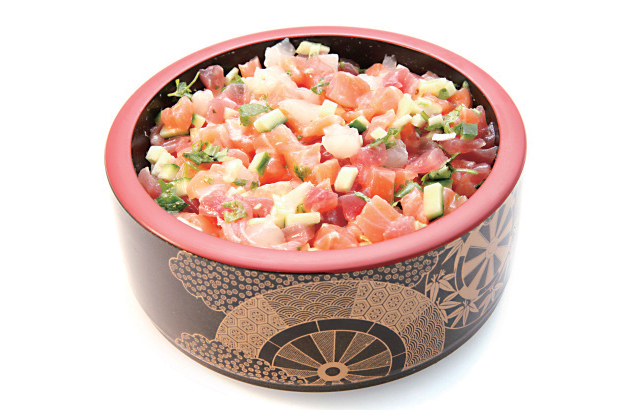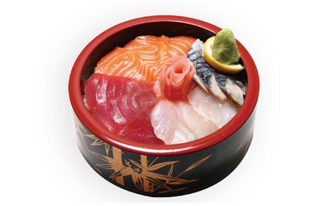 Un bol de riz vinaigré avec assortiment de poissons crus